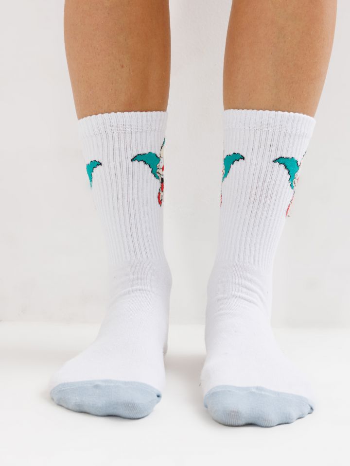 גרבי ספורט כחולות ורכות, בעיטור רקמה של סוניק.
